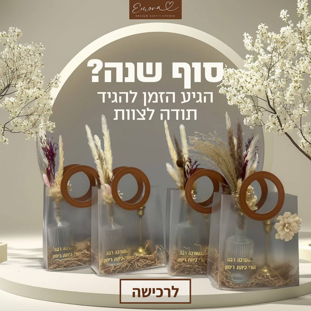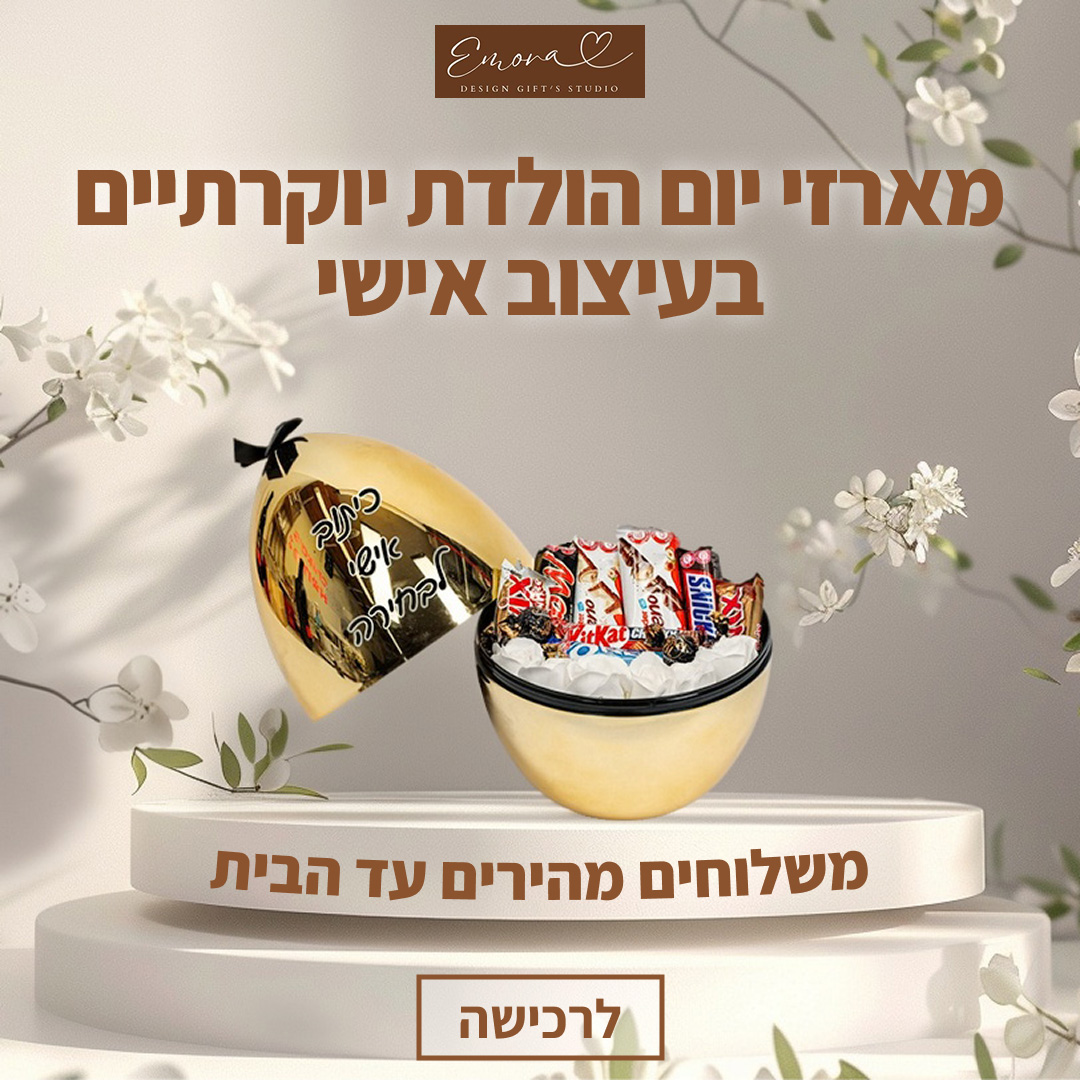 emora gifts נולד מאהבה לפרטים קטנים ולעיצוב אלגנטי. אנחנו מאמינים שיוקרה יכולה להיות נגישה. כל מארז מקבל יחס אישי, שקיפות במחיר ותמונה לאישור לפני מסירה. אנחנו מבצעות משלוח לערים במרכז ומקפידות על זמינות ונועם, שני ערכים שמובילים אותנו יום‑יום.